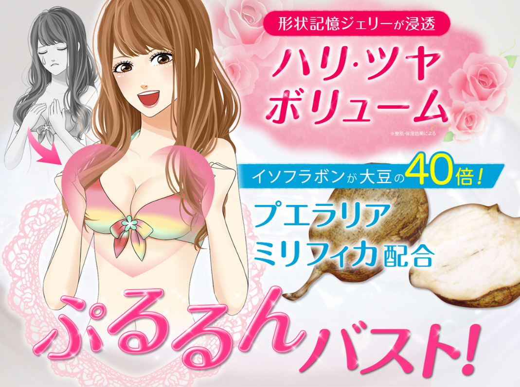 以下の特徴を持っているバストケア商品で、只今、人気沸騰中!