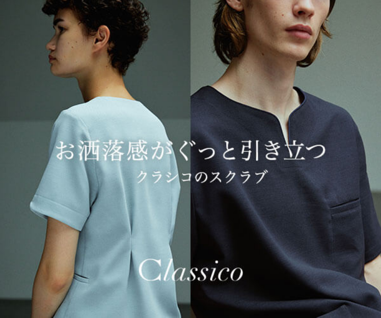 クラシコは、スタイリッシュでおしゃれなデザインに加え、高品質で機能性も兼ね備えている医療用ユニフォームメーカー。