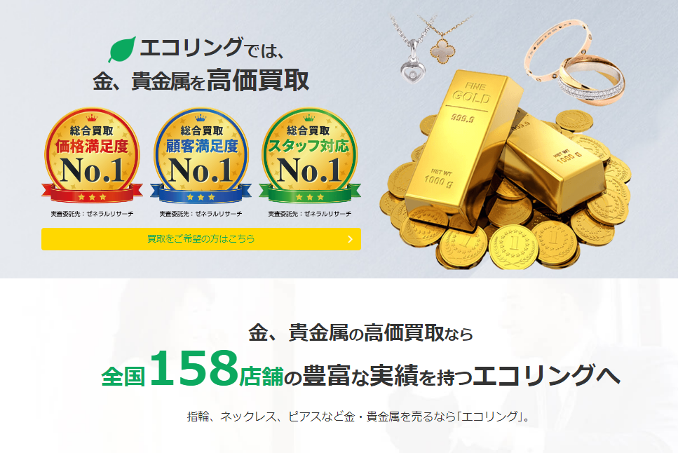 ⇒ 金・貴金属の売却を検討なら査定無料・高価買取の【エコリング】