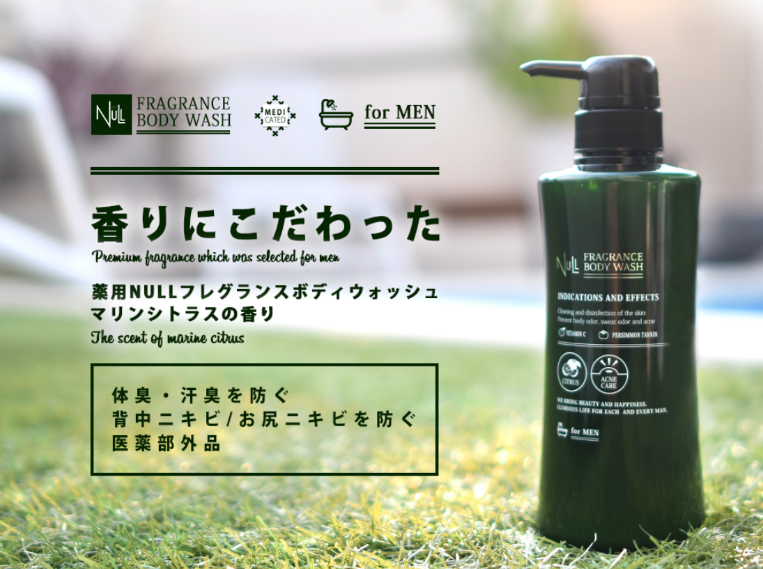 体臭・加齢臭に悩んでいる男性に、大人気の「薬用NULLフレグランスボディウォッシュ」